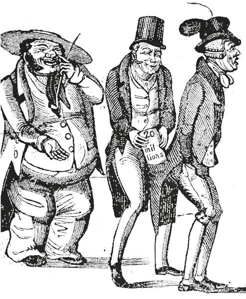 Освобождение рабов, или «Джон Буль обманут на 20 миллионов». Коррумпированный политик вытаскивает 20 миллионов фунтов из кармана Джона Буля и передает своему клиенту-рабовладельцу. В 1833 г. это была колоссальная сумма; британские налогоплательщики расплатились за нее лишь к 2015 г. Бодлианская библиотека, John Johnson Coll of Political & Satirical Prints, Series: Political Drama No. 10. Shelfmark: Political Cartoons 4 (8)