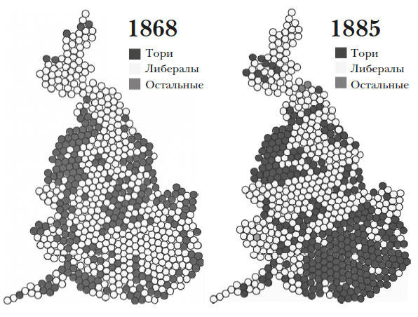 Англичане начинают голосовать по племенному признаку. В 1885 г. южноанглийские избиратели сформировали практически непоколебимый консервативный блок на Юго-Востоке. Либералам удалось пробить его лишь однажды в 1906 г., так что им все больше и больше пришлось полагаться на альянс Северной Англии с кельтами. Впоследствии тот же механизм еще более явно действовал и для лейбористов