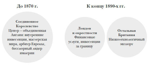 Развивались две различные экономики: глобальный информационный финансовый сектор на Юго-Востоке Англии; низкоквалифицированный труд с ограниченным сроком годности в остальной Британии.