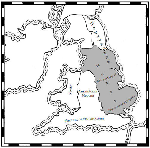 К моменту своей смерти в 899 г. Альфред создал англоязычную версию самой передовой политической цивилизации в Европе и стал cyning ofer eall Ongelcyn butan ðæm dæle þe under Dena onwalde wæs («королем всей Англии, кроме той части, где правили даны»). Правда, часть эта была довольно велика. Различия между Севером и Югом, заметные еще при Беде, значительно увеличились после прихода викингов, а также под их управлением. Культурный Север в то время достигал столь южных областей, как долина Темзы, определенно включая в себя и Восточную Англию. Английские топонимы до сих пор помогают определить политические границы на момент смерти Альфреда.