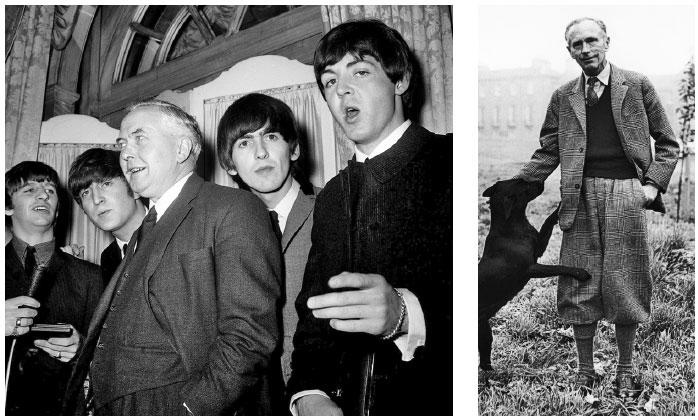 Гарольд Уилсон отлично понимал, как полезно оказаться на одном экране с The Beatles. Алек Дуглас-Хьюм понятия об этом не имел и просто стремился вести себя достойно. Слева: The Beatles встречаются с Гарольдом Уилсоном за шесть месяцев до его избрания, отель «Дорчестер», 19 марта 1964 г. (© Keystone Press / Alamy). Справа: премьер-министр сэр Алек Дуглас-Хьюм в своем особняке в Колдстриме, графство Бервикшир, с любимым подружейным лабрадором, 25 октября 1963 г. (© Trinity Mirror / Mirrorpix / Alamy)