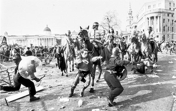 «Битва на Трафальгар-сквер». Беспорядки из-за введения подушного налога, 31 марта 1990 г. (© David Hoffmann Photo Library)