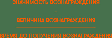 Это временной промежуток между моментом начала работы и моментом получения награды за ее выполнение. Когда вы пишете отчет, срок получения вознаграждения относительно далек: это время, оставшееся до дедлайна. А когда вы смотрите сериал, болтаете по телефону или просматриваете ролики в YouTube, срок получения вознаграждения во много раз ближе. Так уж сложилось, что значимость вознаграждения для нас обратно пропорциональна его удаленности во времени. Мотивация сесть за работу возрастает по мере того, как приближается срок получения вознаграждения (а следовательно, и дедлайн). И наоборот: чем больше времени до получения вознаграждения (до наступления дедлайна), тем меньше у нас желания приниматься за работу. Исследования показывают, что мы как будто решаем для себя такой пример: