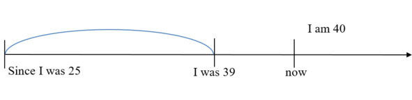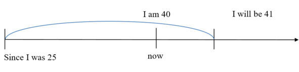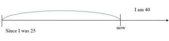 Отрезок с началом в since I was 25 не доходит до настоящего момента; связи с настоящим нет.