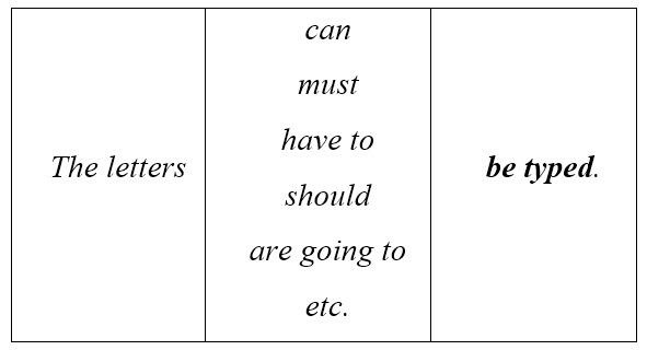*Will be typed это уже готовая модель сказуемого пассивного залога с любым модальным глаголом. Принцип взаимодействия модального глагола с основным (смысловым) одинаков, и, следовательно, какой именно модальный глагол будет на месте will, в грамматическом смысле неважно.