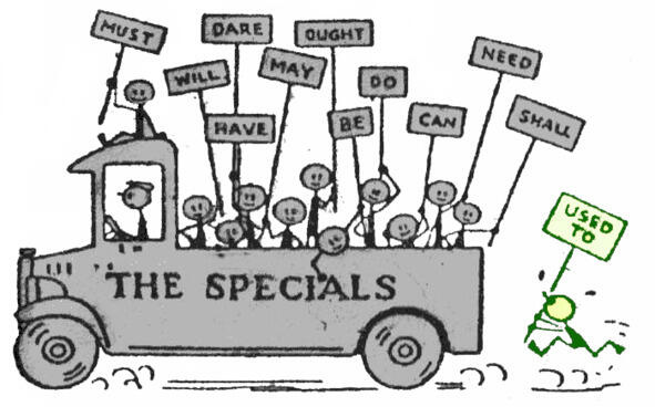 Поведение некоторых из пассажиров мы уже знаем довольно хорошо и понимаем, почему они входят в группу «специальных» be, have, do; сюда же попали модальные глаголы, означающие не само действие, а отношение к нему can, must и др.