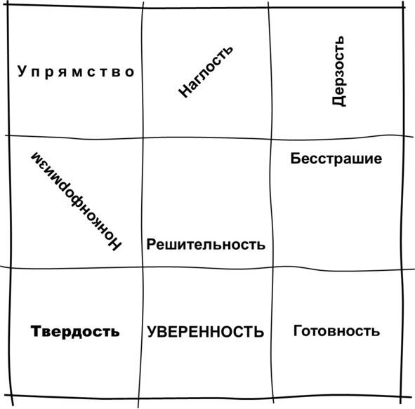 Для лучшего понимания смелости можно составить матрицу смелости. Можно посмотреть в словаре, но не спешите с этого начинать. Определите девять характеристик смелого человека. Это поможет и расширит поле поиска и решения задачи повышения смелости. Возможно, смелость это не только бросить вызов обстоятельствам, но и проявить твердость, уверенность в чем-то, а может, просто что-то сделать, тогда как другие продолжают ждать и размышлять.