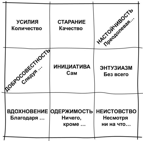 Так в одной древней причте упоминается о мудреце, который встретил работников, несущих кирпичи. И мудрец спросил каждого: «Что ты делаешь»? Но услышал разные ответы: первый сказал «я ношу кирпичи», второй «я зарабатываю на жизнь», третий «я строю дом». На этом история обрывается, но мы то знаем, что матричный метод может дать большее количество ответов и большее качество мотивации, но об этом в другой книге.