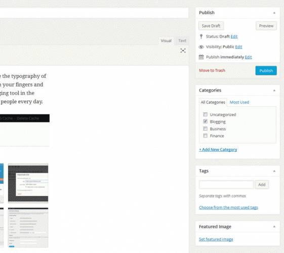 Теперь, когда вы написали свою запись, вставили в нее ссылки и изображения, вы можете сделать ее доступной на своем сайте. Перед тем как публиковать свою запись, вам нужно будет внести в нее некоторые финальные штрихи. С правой стороны экрана редактирования записи имеются панели, которые вы должны заполнить. Выберите рубрику для вашей записи из списка, который вы создали ранее. Вы можете также добавить новую рубрику прямо в этом поле. Введите некоторые метки для записи в панели Tags, щелкая Add после ввода каждой новой метки. И, наконец, панель «Featured Image» (Миниатюра); здесь вы можете загрузить изображение, которое будет связано с данной записью. Разные темы выводят миниатюры по-разному, однако обычно они представлены как крупные изображения в самом верху записей. Загружаются они точно так же посредством загрузчика медиа-библиотеки.