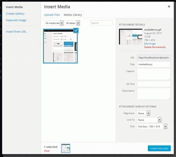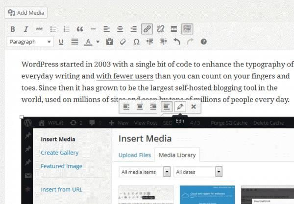 Щелкните по кнопке «Insert into Post», и ваше изображение будет добавлено в запись. Если вам понадобится впоследствии изменить какую-либо из этих настроек, вы можете один раз щелкнуть по необходимому изображению, после чего появится панель инструментов, где вы сможете отредактировать изображение.