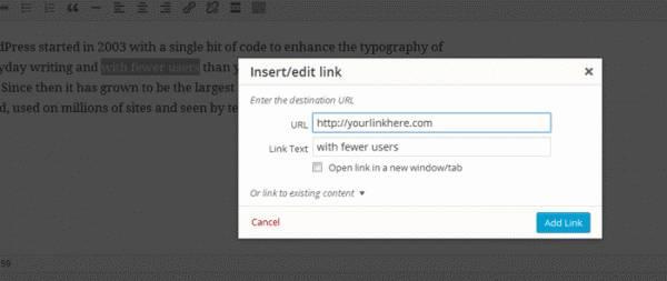 Создайте тестовую запись: введите заголовок, некоторый текст, после чего нажмите «Save Draft» (Сохранить черновик). Если вы хотите вставить ссылку, выделите участок текста, после чего щелкните по кнопке со ссылкой и введите URL для вашей ссылки. Вы можете затем щелкнуть по кнопке «Preview», чтобы посмотреть, как будет выглядеть запись на вашем сайте. Не переживайте, записи пока нет на вашем сайте.