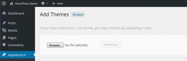 Более простой способ установки темы загрузить ее в zip-формате через консоль. Чтобы сделать это, перейдите в раздел «Appearance» «Themes» «Add New» «Upload Theme», щелкните по кнопке «Browse» и выберите zip-архив с темой на вашем компьютере, после чего щелкните по кнопке «Install Now».