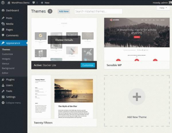 Вы можете добавлять столько тем, сколько вам требуется. Посетите раздел «Themes» там будут перечислены все ваши загруженные темы. Здесь вы можете активировать любую из тем или посмотреть информацию о ней.