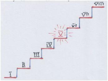 Вот и наша лестница квинт пронумерована числами-ступенями.