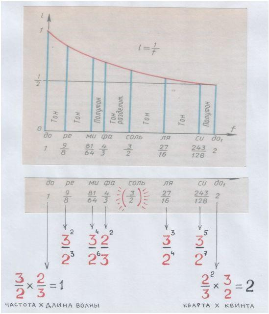 Кстати, ты заметил, что все числа это частоты: числитель дробей больше знаменателя, «большее на меньшее», большее число в отношении к меньшему. У длин волн наоборот: меньшее число в отношении к большему. Надеюсь, ты помнишь про этот перевёртыш/перекрёст.