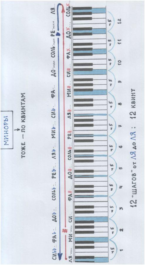 А тоже гуляют по той же лестнице-кольцу-бесконечности. Вместе с тональностями. И тоже правильно, по квинтам! (Смотри картинки на следующих страницах.)