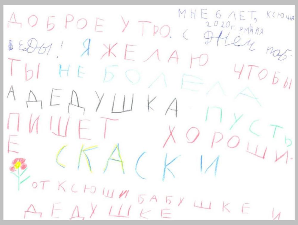 Она по собственной инициативе написала поздравление с великим праздником на листе А4 (Письмо смотри ниже).