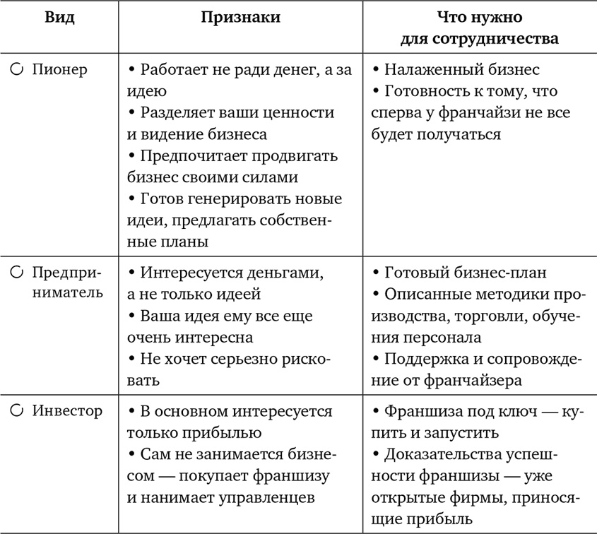 1. На старте франчайзинга у вас еще может не быть описанных форматов и системных решений для франчайзи. Поэтому ищите партнеров-пионеров.