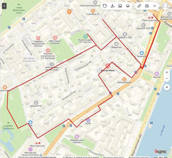 Затем поворачиваем налево и идём по Несвижскому переулку, снова налево на Ксеньинский переулок и выходим на Комсомольский проспект. Переходим на другую сторону проспекта к дому 13.