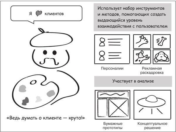 Кстати, юзабилити-экспертам не в новинку работать постепенно, и они привычны к итерациям. Они проектируют и создают новые функции по мере того, как пишется код (а не пытаются сделать все заранее и кардинально опередить всю команду).