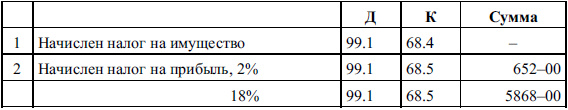 В конце квартала рассчитаем налог на имущество и налог на прибыль: