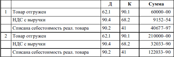В торговле на себестоимость будем также списывать себестоимость реализованного товара (счет 41). Себестоимость реализованного товара можно списать или в момент отгрузки, или в конце месяца одной проводкой. Это зависит от того, как в организации обеспечен учет товара.