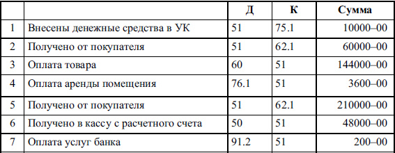 Теперь, вооружившись всеми этими знаниями, приступим к заполнению журнала хозяйственных операций. Будем заносить операции в следующей последовательности: