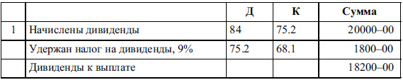 в конце года начислить дивиденды, удержать налог на дивиденды, закрыть счета продаж и счета прочих доходов и расходов.