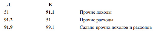 Итак, в конце каждого месяца мы подводим итоги деятельности и определяем финансовый результат (прибыль или убыток) от основной деятельности (счет 90.9) и результат от прочих доходов и расходов (счет 91.9). Вся полученная за текущий месяц прибыль (убыток) собирается на счете 99.1.