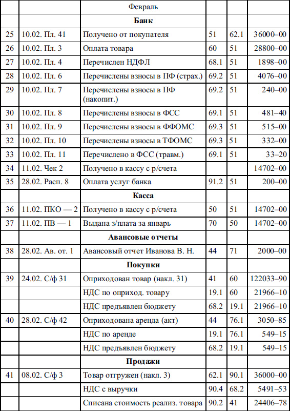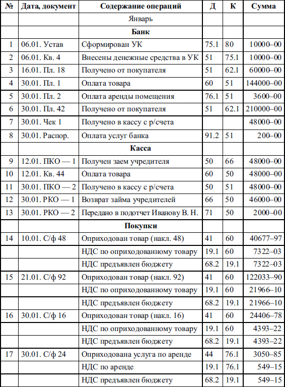 А теперь рассмотрим на примере, как выглядит журнал хозяйственных операций в окончательном варианте в организации оптовой торговли ООО «Вектор-1».