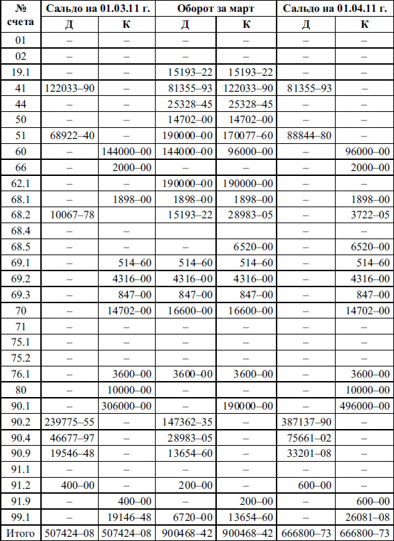 3.7. Оборотно-сальдовая ведомость за март 2011 г