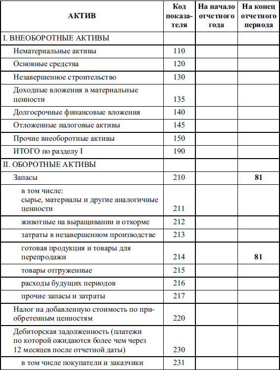 В форму 1 «Бухгалтерский баланс» заносятся остатки по счетам бухгалтерского учета на начало отчетного года и на конец отчетного периода (кроме счетов 90, 91).