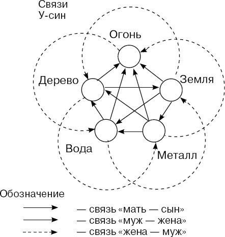 В этом параграфе мы будем рассматривать особенности взаимодействия всех элементов схемы У-син с элементом Огонь, который соотносится с мужским началом.