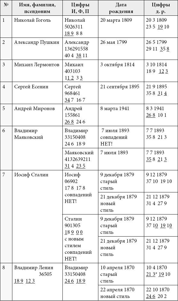 Проведем анализ полученных результатов. Как вы, несомненно, заметили, при сравнении имени и даты рождения конкретного человека мы использовали дополнительные цифры, полное или частичное совпадение которых указывает на связь между теми понятиями, которые мы сравниваем.