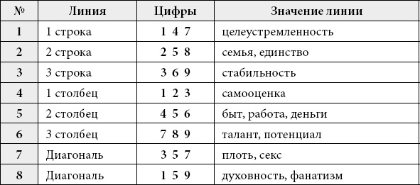Чтобы не листать книгу, еще раз напомним значения линий в матрице.