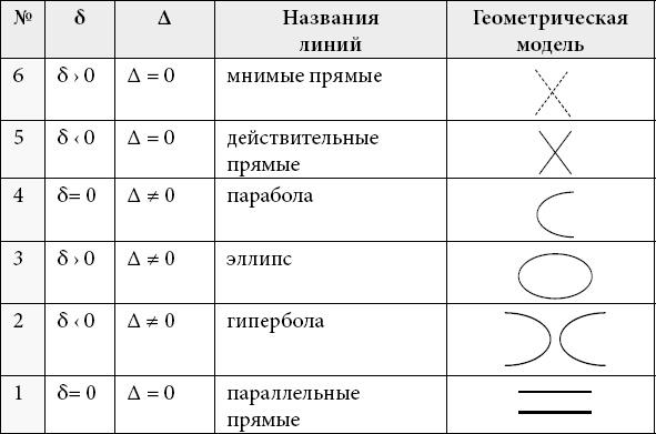 Сделали? Вот и отлично. Теперь наступает самый важный момент нашего исследования. Нам понадобятся две таблицы, позволяющие определить тип мышления и прогнозирования. Запишем первую из них, позволяющую определить линию второго порядка по значениям малого и большого определителя.