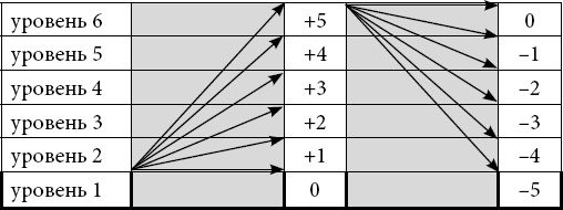 Например, нулевой вектор может находиться на всех шести уровнях, а векторы длины 2 или 2 могут расположиться между любыми двумя уровнями: 1 и 3, 2 и 4, 3 и 5, 4 и 6, 6 и 4, 5 и 3, 4 и 2, 3 и 1.