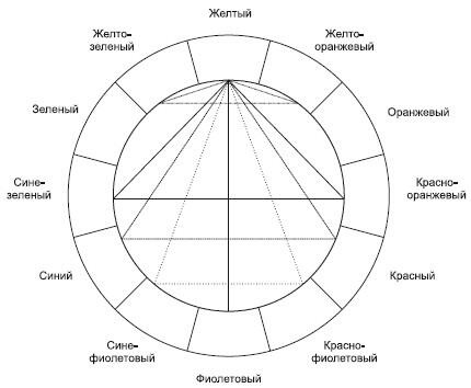 Прочие секторы круга получаются благодаря смешению ранее сформированных цветов желто-оранжевого, красно-фиолетового, сине-фиолетового и т. д. Каждый цвет занимает в круге определенное место. Гармоничными будут сочетания цветов: