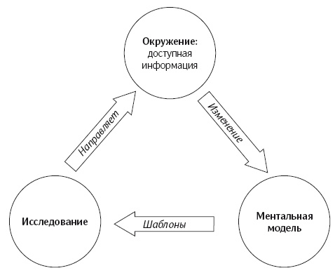 Ульрик Найссер, американский психолог и член Национальной академии наук, скончавшийся в 2012 году, в своей книге «Познание и реальность» (Cognition and Reality, 1976) предполагал, что мы используем ментальные модели (он называл их схемами) для исследования мира: они играют роль фильтров, через которые мы отбираем полезную для себя информацию (рис. 2). Схема, говорил Найссер, « это не только план, но и его исполнитель. Это шаблон действий, а также шаблон для действий».