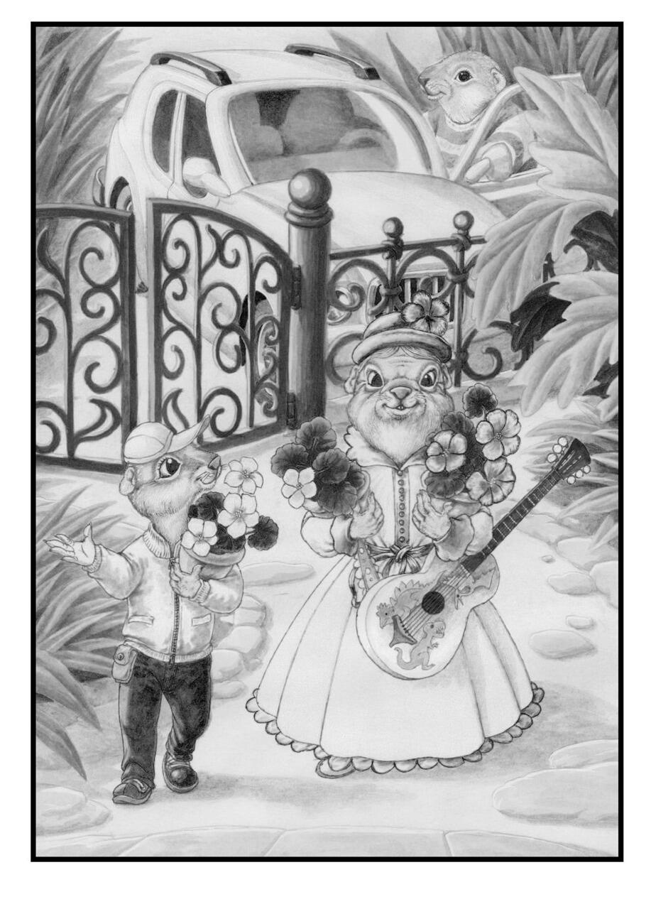 Егор вернулся домой удивлённый; он крепко сжимал в лапке волшебный клубок подарок Маруси. Дома его ждала подружка-белка Анжелка.