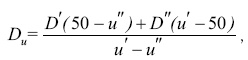 где D' и D˝ найденные в опыте значения раздражителей, ближайшие к лежащему между ними искомому значению Du. При этом и' та частота суждений данного рода, которая вызывается раздражителем D' и превышает 50 %, а и˝ та частота суждений данного же рода, которая соответствует раздражителю D» и является меньшей, чем 50 %.