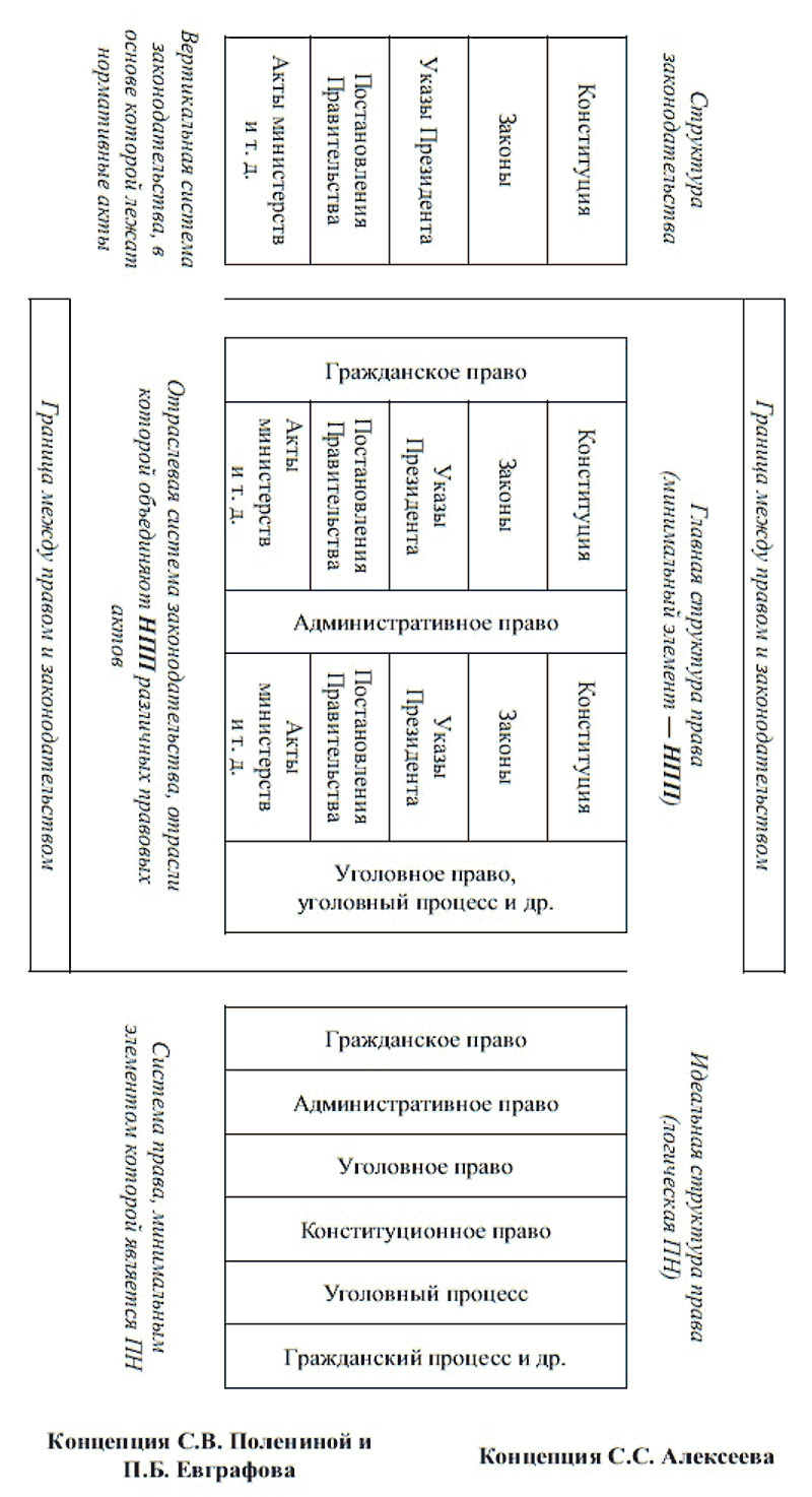Итак, выделение отраслей законодательства происходит на основе существующих отраслей права[64], а значит, посредством этого деления законодательство как система нормативных актов как бы привязывается к объективно существующей структуре права.