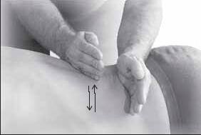 Прямолинейное растирание. Выполняется концевыми фалангами одного или нескольких пальцев кисти. Проводится одной рукой или обеими, иногда с отягощением (рис. 14).