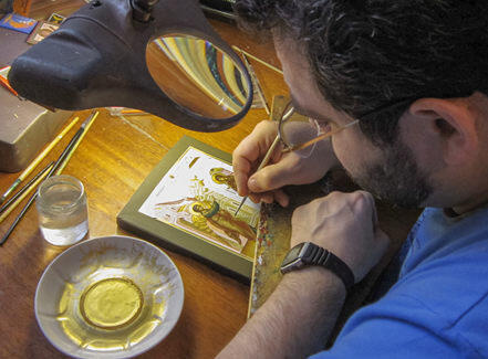 Сучки из древесины убираются, так как они со временем сильно усыхают, и меловой грунт над ними начинает деформироваться. Вместо сучков с помощью столярного клея вклеивают вставки, которые должны быть с лицевой стороны и не глубже середины доски. Лицо доски отстругивается зубчатым рубанком (цинубелем), чтобы грунт сильнее прикрепился к доске.