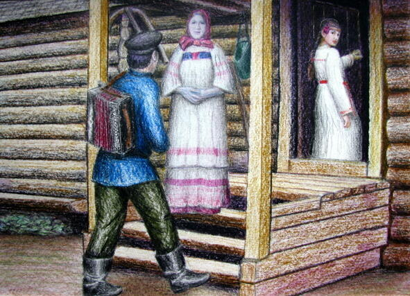 Once upon a time there lived a man and his wife. One day the husband felt bad and became ill. He suffered for a while and then died. Some time passed and an evil spirit got into the habit to visit the young widow every night. The devil used to appear before the woman in the guise of a handsome man and she became infatuated with him. Finally she realized that something terrible was happening. Somehow or other, the unfortunate woman tried to get rid of the man. She was almost exhausted, but the devil preyed on her mind and she could not do anything with him.