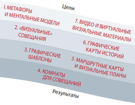 Основные инструменты визуализации помогают задействовать все четыре потокаЭти семь инструментов приведены в той последовательности, в которой вы будете учиться их применять. Их можно сравнить с музыкальными аккордами. Хотя здесь они представлены по отдельности, вы сможете создавать из них какие угодно мелодии.