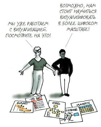 Глава 3. Как проводить «визуальные» совещания? Охватывает все то, что должен знать каждый менеджер о проведении совещаний с применением визуализации и взаимодействии с ее практиками. Лидер задает тон, определяя поведение остальных участников встречи. Если у вас имеется четкое представление о том, каких результатов вы хотите достичь, используйте простор для творчества в плане формирования ожиданий и возможностей.