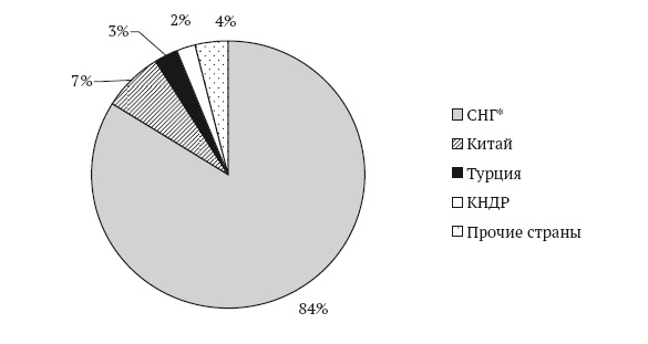 Рис. 2. Структура трудовой миграции в РФ (по странам), %