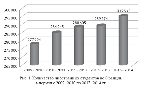 Рис. 1. Количество иностранных студентов во Франции в период с 20092010 по 20132014 гг.