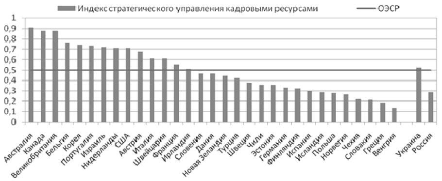 Рис. 1.2. Диаграмма индекса стратегического управления кадровыми ресурсами в странах ОЭСР, России и Украине Источник: OECD Government at a Glance[6].